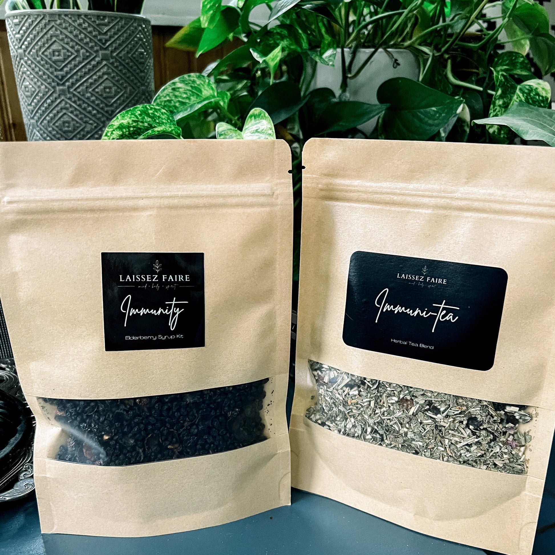The Immuni-Tea blend includes echinacea, rose hips, and mugwort. All beneficial for immune support.