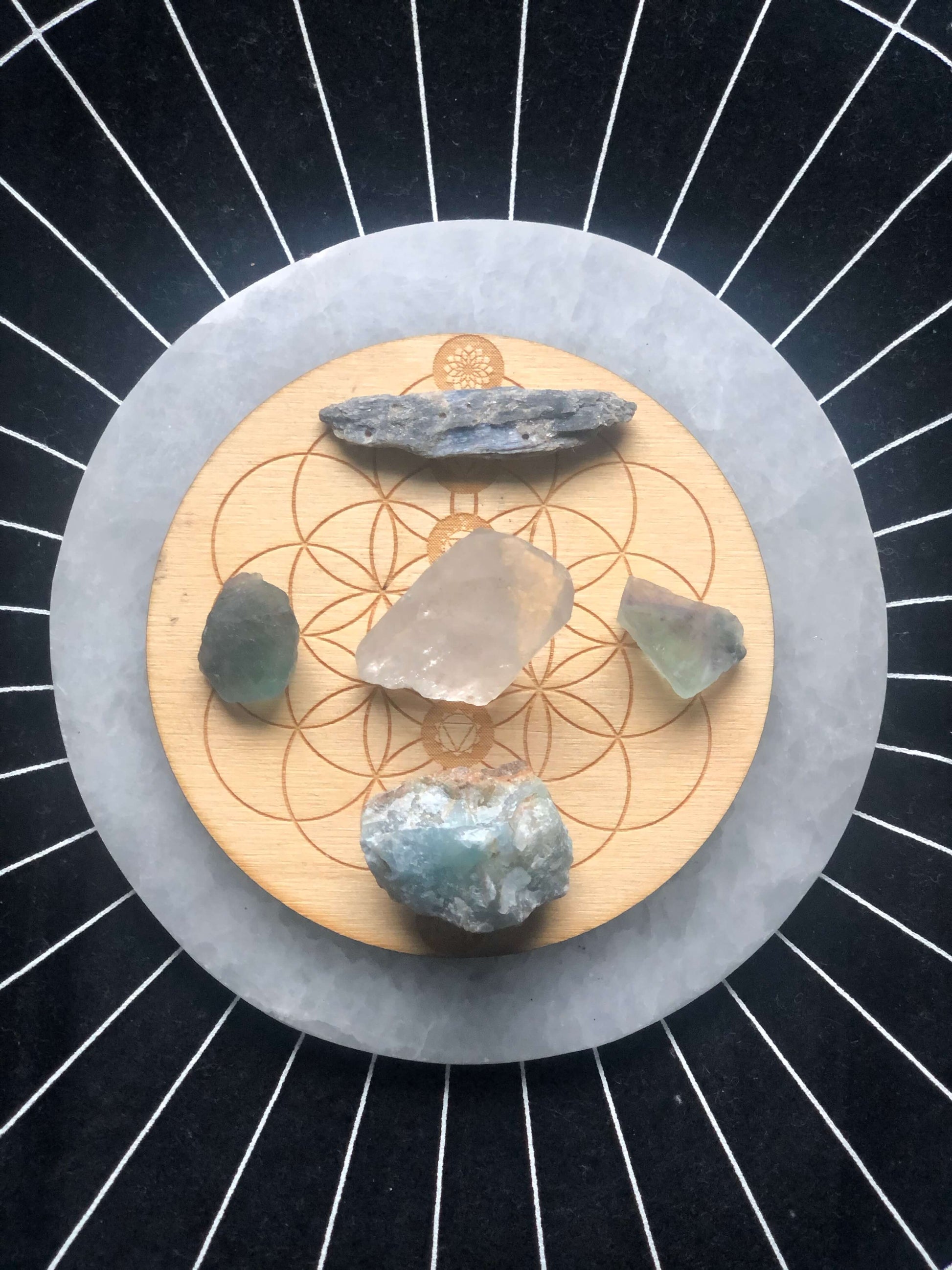 The Libra crystal set includes a clear quartz, blue onyx, blue kyanite, and two pieces of fluorite. The clear quartz is for amplification, supporting manifestation and growth. The Flourite is to support decision-making after you have weighed your options. The Blue Onyx supports speaking your truth and mental strength. Finally, blue kyanite is a great crystal to support balance. Enjoy this as a gift for a Libra -Sun, Moon, or Rising/Ascendant, or to add to your collection.
